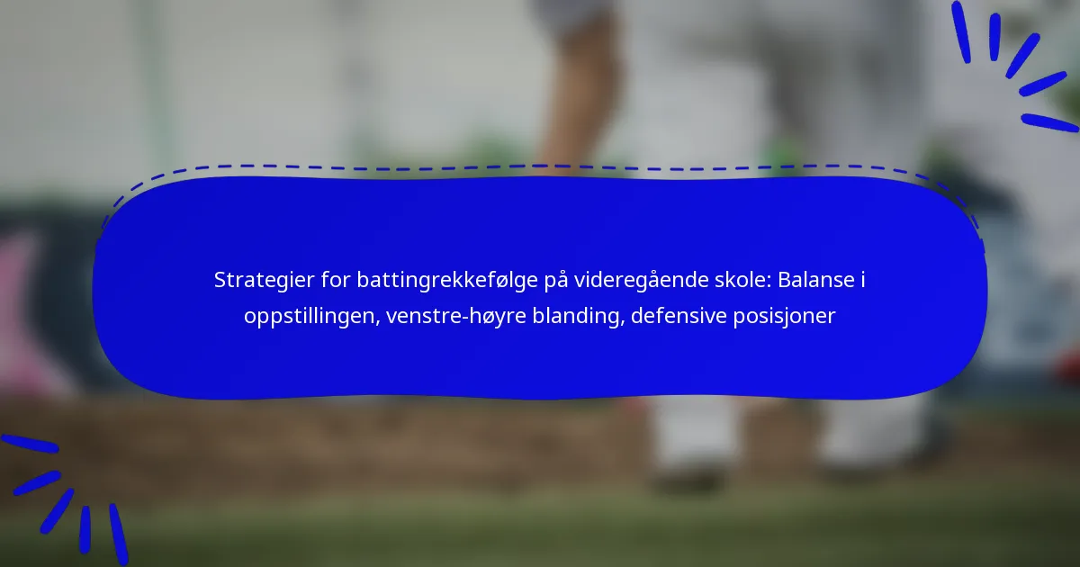 Strategier for rekkefølge i videregående skole er avgjørende for å maksimere et lags offensive potensial, samtidig som man tar hensyn til spillernes styrker og svakheter. Ved å balansere sammensetningen av laget, inkludere en venstre-høyre blanding, og ta hensyn til defensive posisjoner, kan trenere lage en effektiv rekkefølge som forbedrer lagets samlede ytelse og kampresultater.